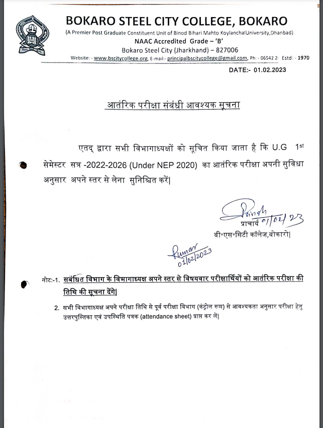 Internal Examination UG Semester- I Session 2022-26 (Under NEP 2020)